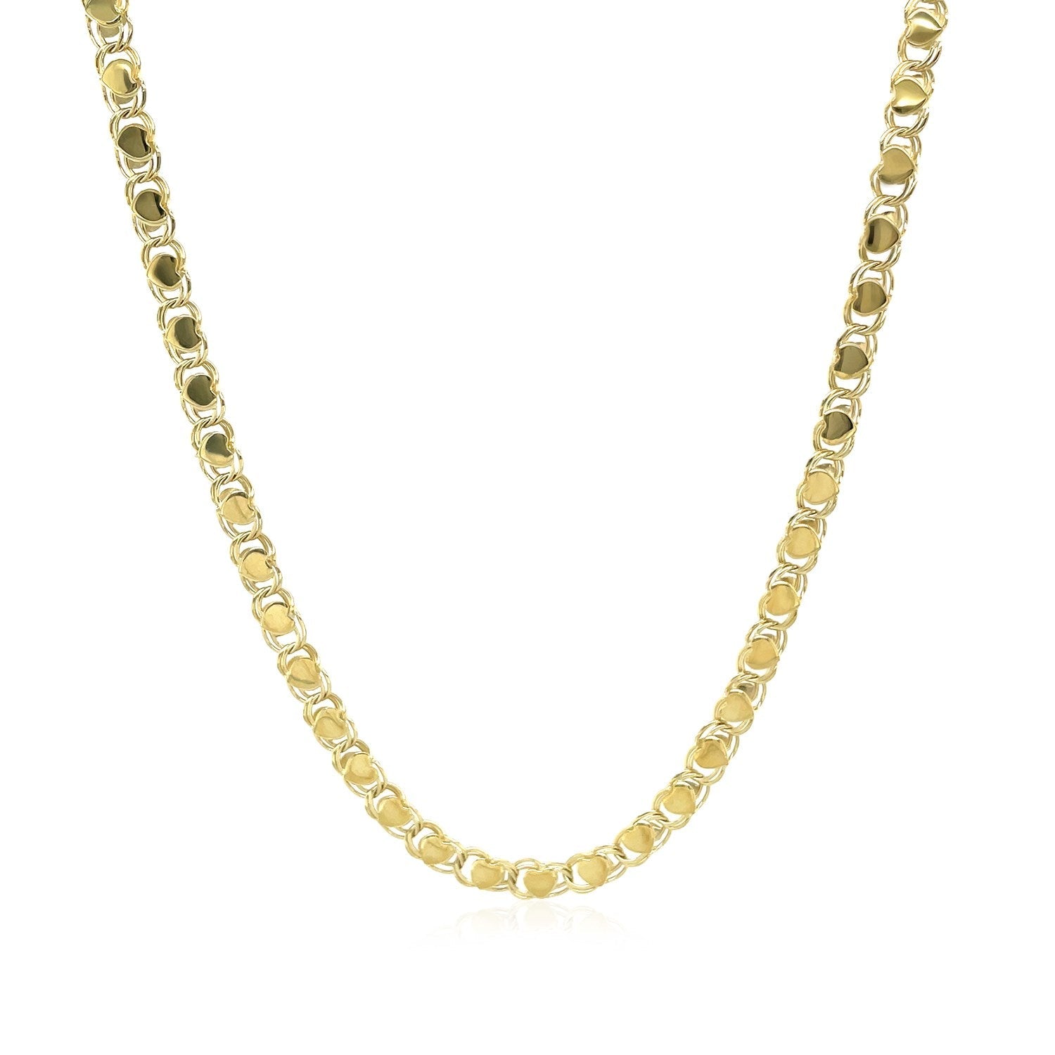 This heart chain comes in 14k yellow gold and has a width of 3.00 millimeters.