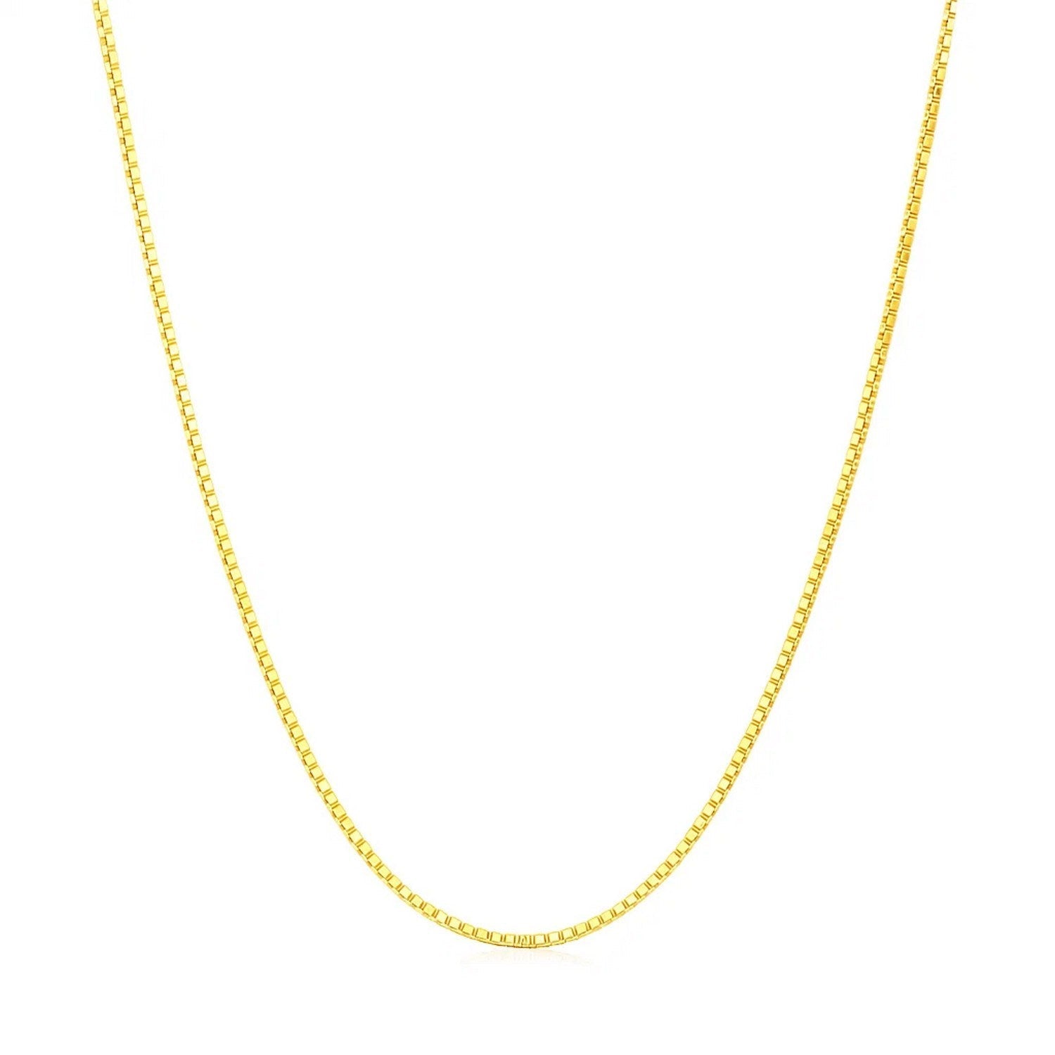 This octagonal box chain comes in 14k yellow gold and has a width of 1.00 millimeters.